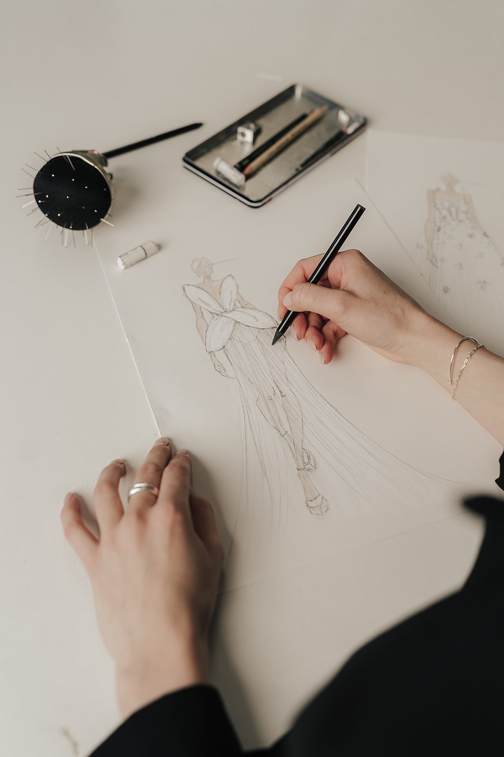 Add a original Illustration of your unique Kaviar Gauche Wedding look to complete your experience in an artwork.